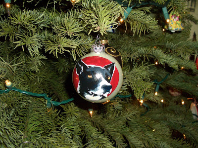 This is my favorite new decoration — given to me by my dear friend — it is a hand-painted image of our beloved Sierra, who passed away in March. She snuck into my house to borrow a photo for the artist and had her paint this for me. I cried when she gave it to me. This is the true spirit of the holidays — a true gift of love that I will treasure forever.